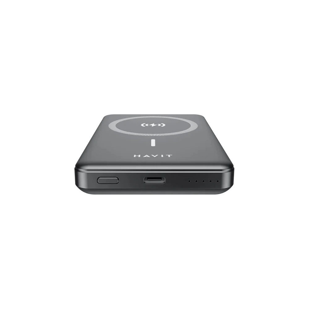 La Powerbank Havit PB5201 con Carga Magnética Inalámbrica es una batería portátil ultra-compacta, diseñada específicamente para ofrecer una experiencia de carga conveniente y sin cables. Es la solución ideal para usuarios que buscan alimentar sus dispositivos compatibles con carga inalámbrica, especialmente aquellos con tecnología magnética como MagSafe (iPhone).